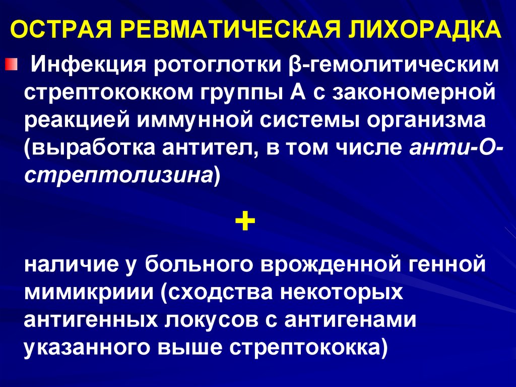 ОСТРАЯ РЕВМАТИЧЕСКАЯ ЛИХОРАДКАИнфекция ротоглотки β-гемолитическим