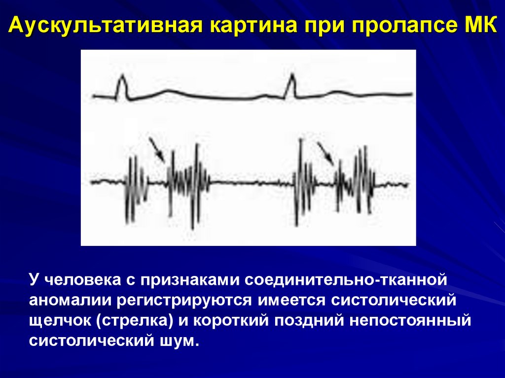 Аускультативная картина при пролапсе МКУ человека с признаками соединительно-тканной