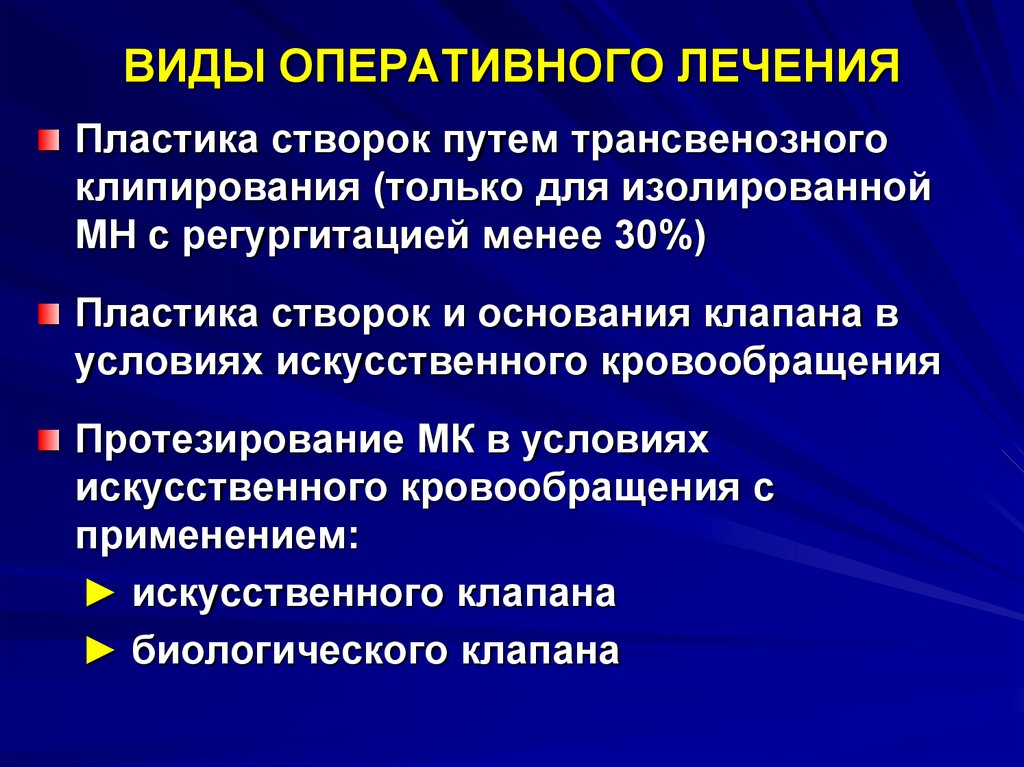 ВИДЫ ОПЕРАТИВНОГО ЛЕЧЕНИЯПластика створок путем трансвенозного