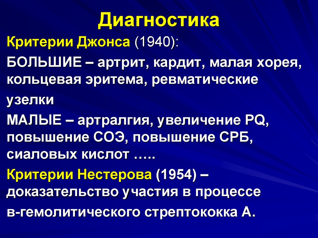 ДиагностикаКритерии Джонса (1940):