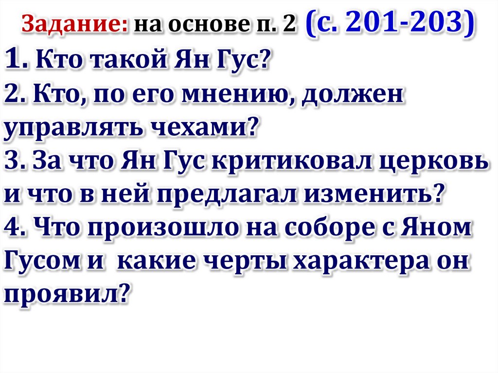 Задание: на основе п. 2 (с. 201-203)1. Кто такой Ян Гус?