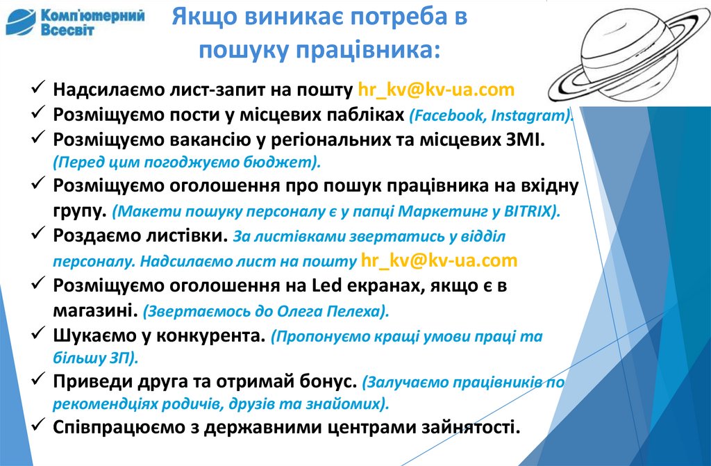 групу. (Макети пошуку персоналу є у папці Маркетинг у BITRIX).