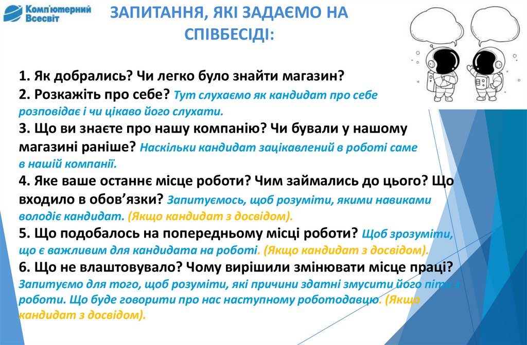 ЗАПИТАННЯ, ЯКІ ЗАДАЄМО НАСПІВБЕСІДІ: