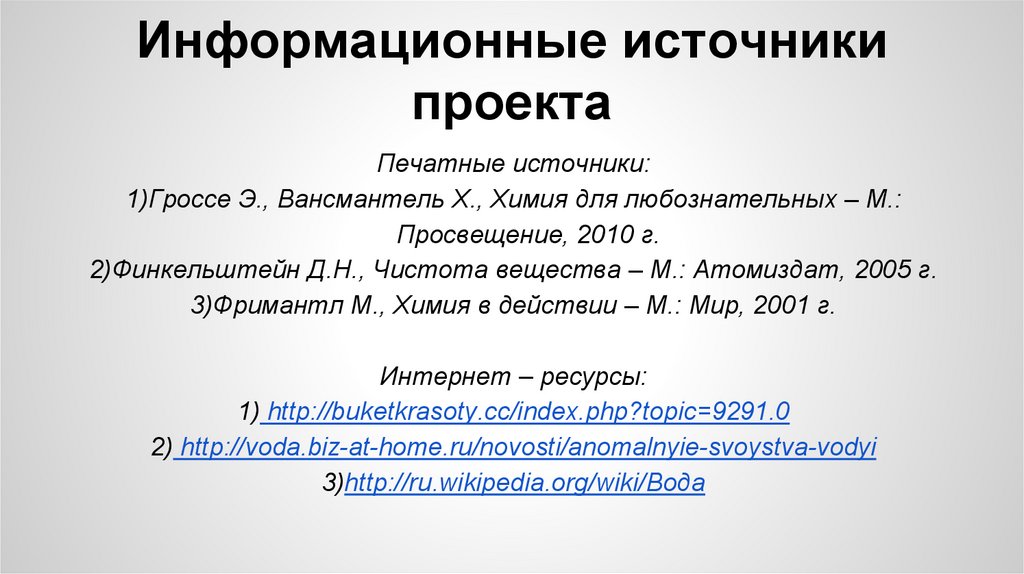1)Гроссе Э., Вансмантель Х., Химия для любознательных – М.: