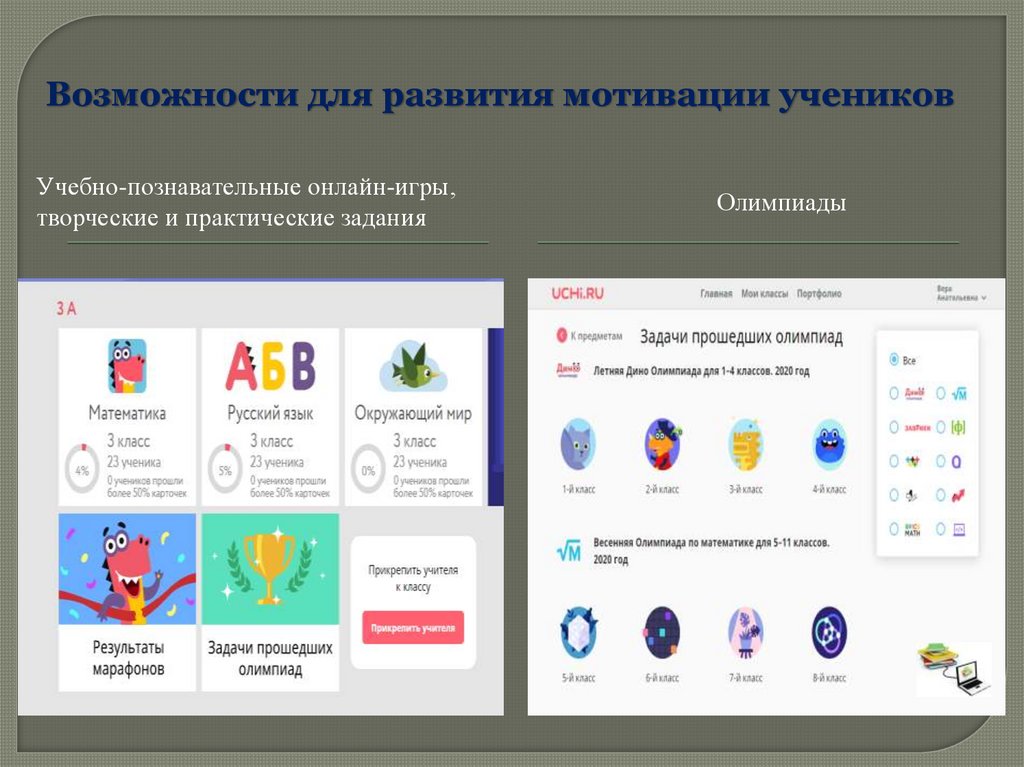 Возможности для развития мотивации учениковУчебно-познавательные онлайн-игры,