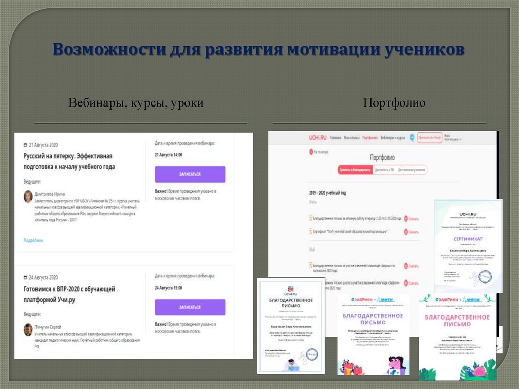 Возможности для развития мотивации учениковВебинары, курсы, уроки
