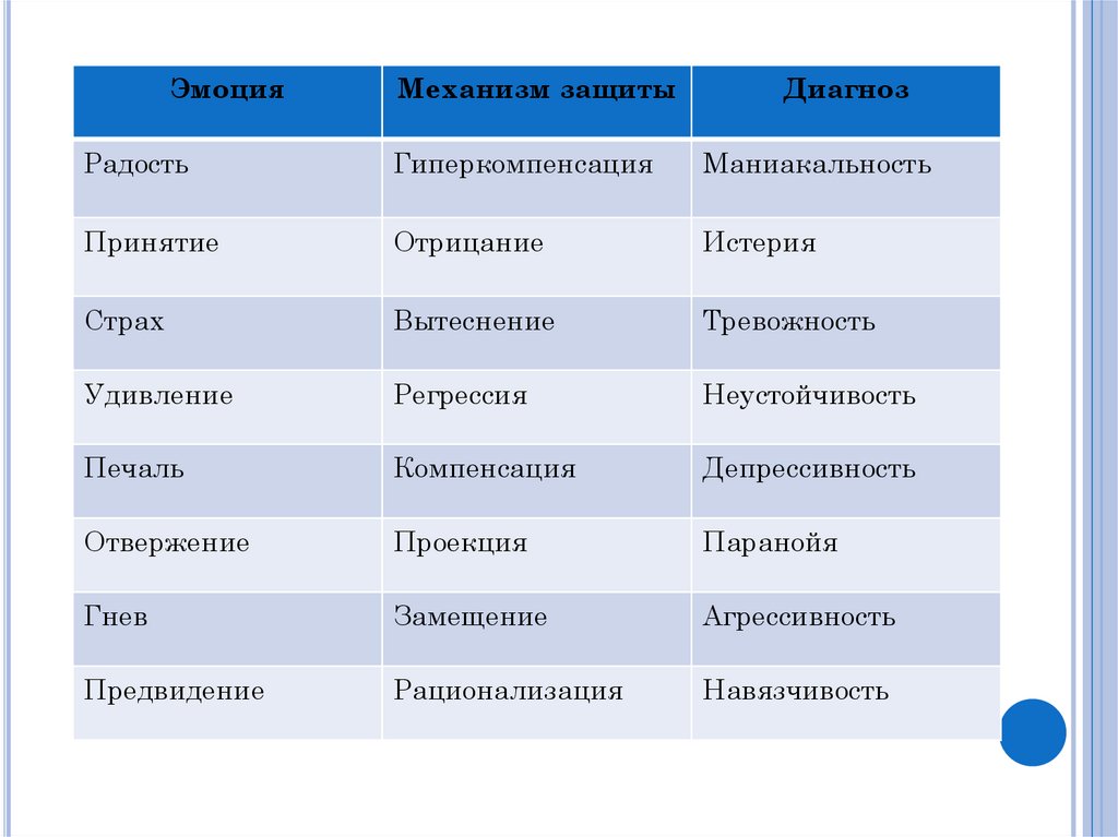 ЭмоцияМеханизм защиты