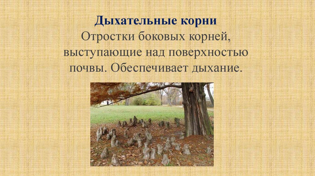 Дыхательные корни. Отростки боковых корней, выступающие над поверхностью почвы