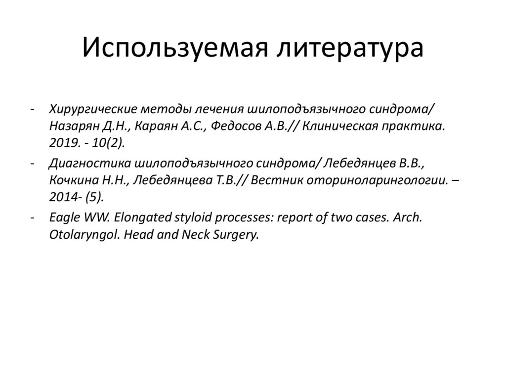 Диагностика шилоподъязычного синдрома/ Лебедянцев В.В.,