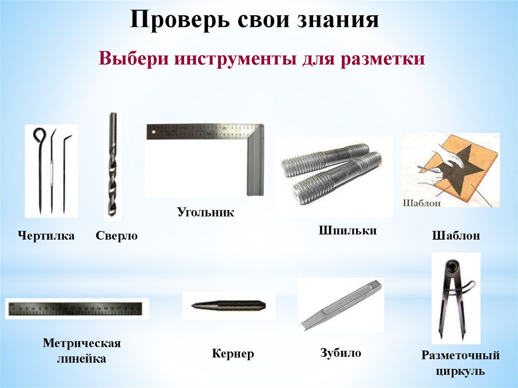 Проверь свои знанияВыбери инструменты для разметки