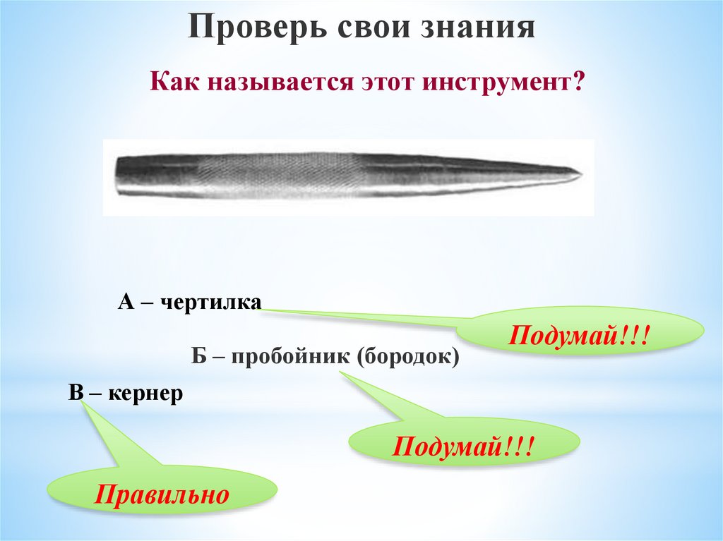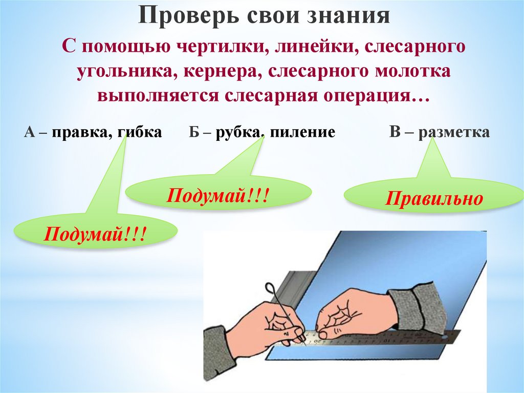 Проверь свои знанияС помощью чертилки, линейки, слесарного