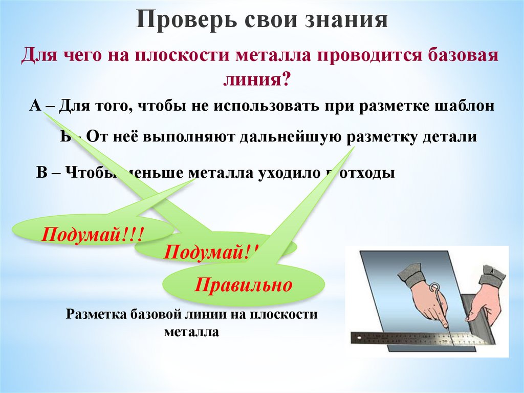 Проверь свои знанияДля чего на плоскости металла проводится базовая