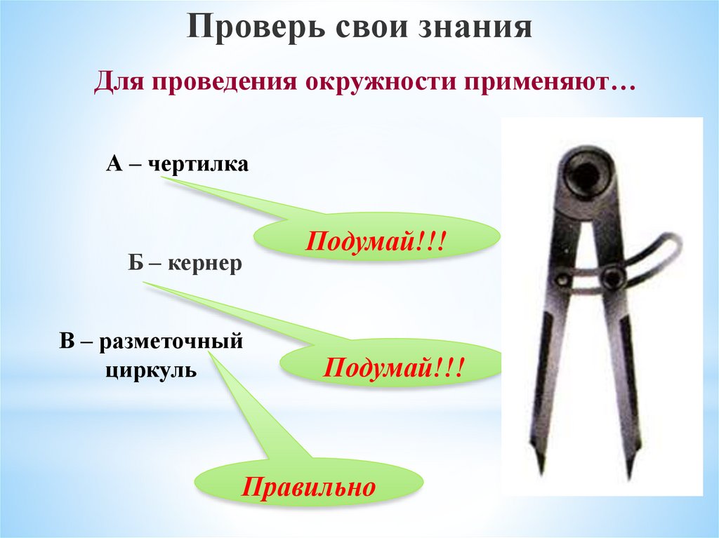 Проверь свои знанияДля проведения окружности применяют…