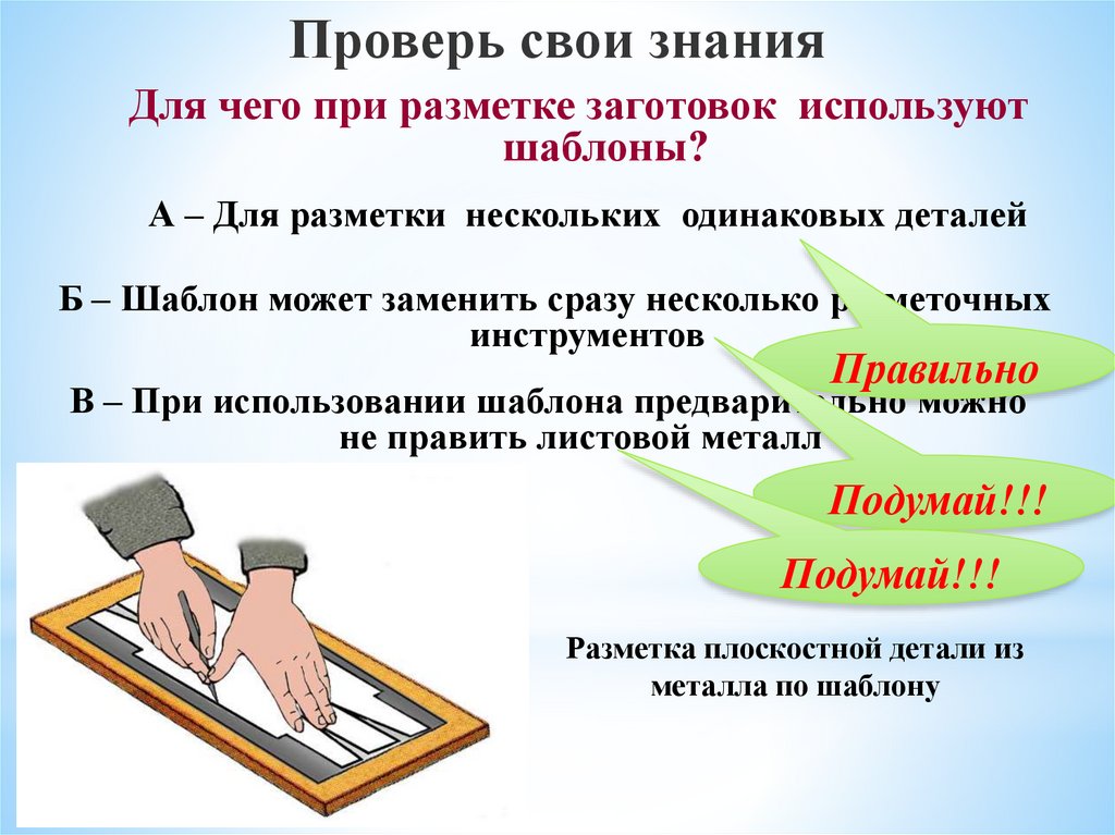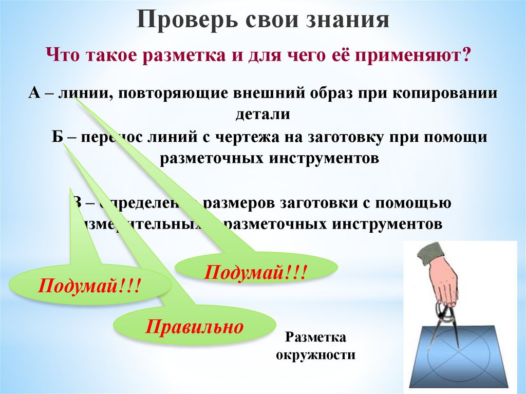 Проверь свои знанияДля чего при разметке заготовок используют
