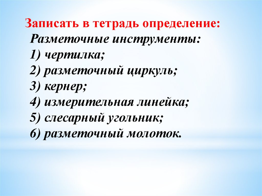 Записать в тетрадь определение:Разметочные инструменты: