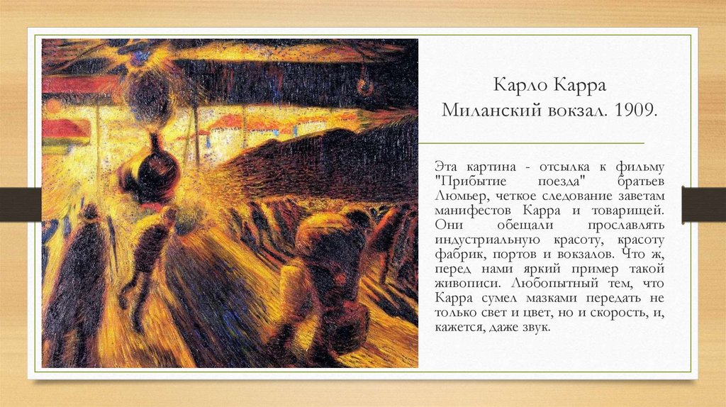 поездом). На картине «Те, кто уезжает» – люди, отправляющиеся в путешествие на поезде, у Боччони они охвачены