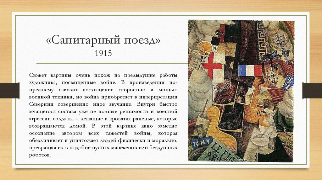 художника, посвященные войне. В произведении попрежнему сквозит восхищение скоростью и мощью
