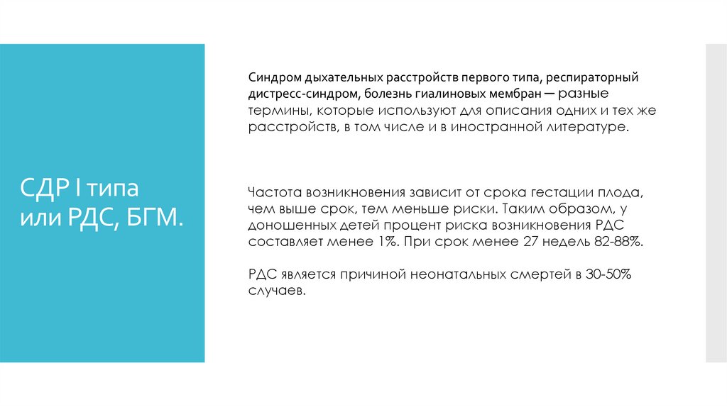 Синдром дыхательных расстройств первого типа, респираторныйдистресс-синдром, болезнь гиалиновых мембран ─ разные