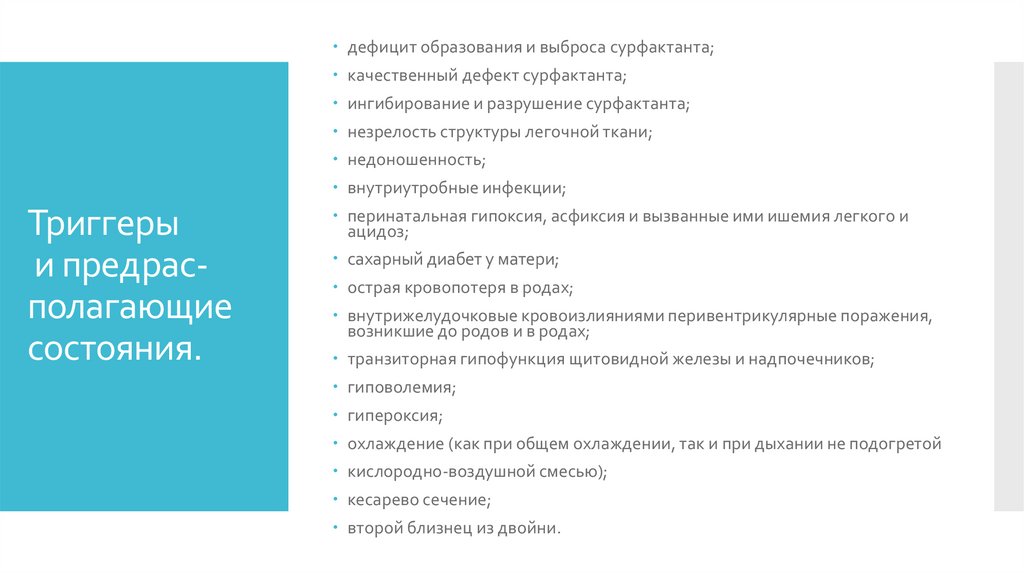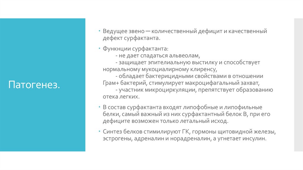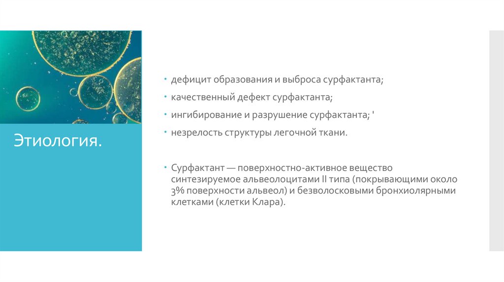 дефицит образования и выброса сурфактанта;качественный дефект сурфактанта;