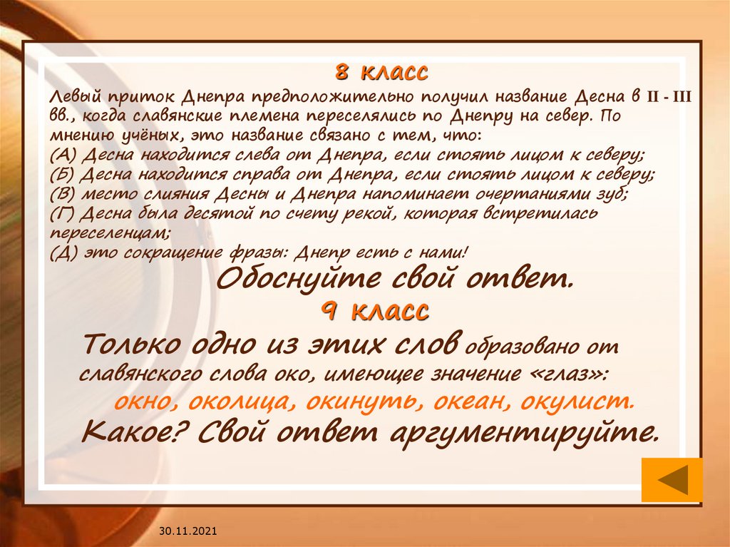 8 классЛевый приток Днепра предположительно получил название Десна в ІІ - ІІІ