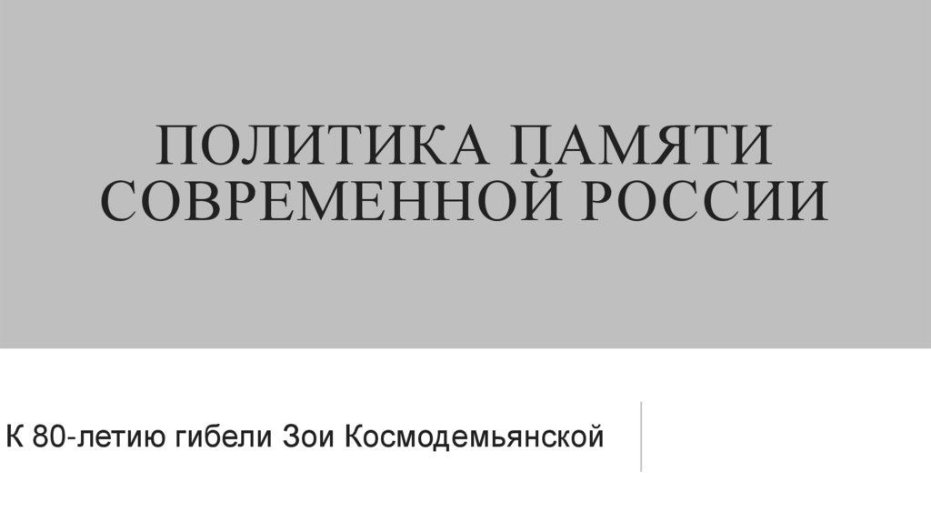 ПОЛИТИКА ПАМЯТИСОВРЕМЕННОЙ РОССИИ