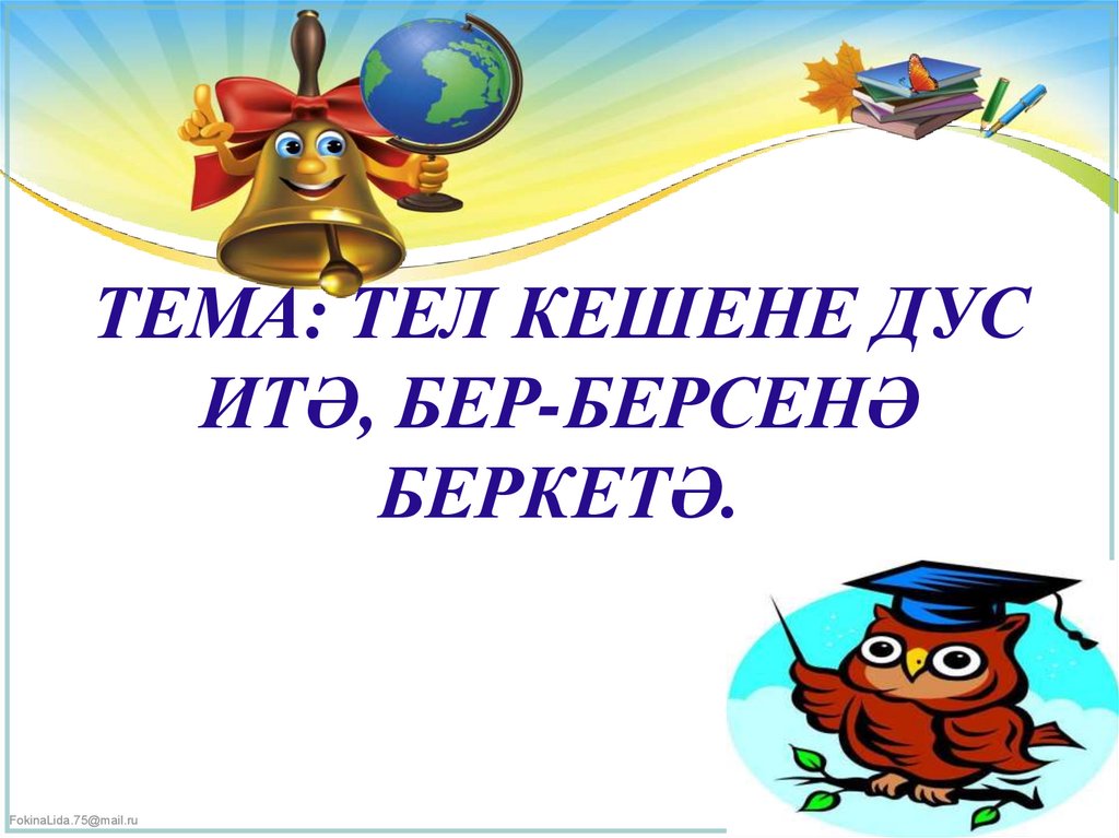 ТЕМА: ТЕЛ КЕШЕНЕ ДУСИТӘ, БЕР-БЕРСЕНӘ