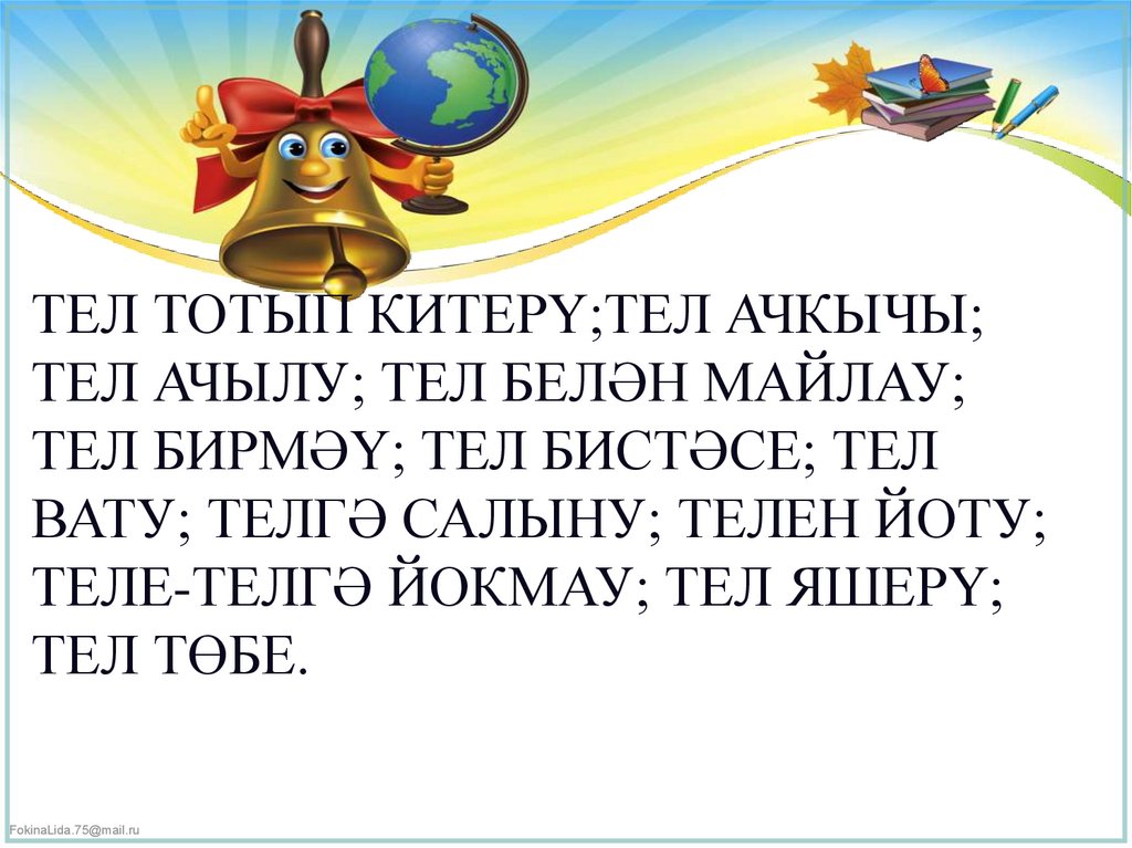 ТЕЛ ТОТЫП КИТЕРҮ;ТЕЛ АЧКЫЧЫ;ТЕЛ АЧЫЛУ; ТЕЛ БЕЛӘН МАЙЛАУ;