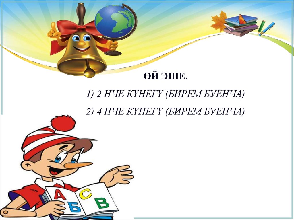 ӨЙ ЭШЕ.1) 2 НЧЕ КҮНЕГҮ (БИРЕМ БУЕНЧА)