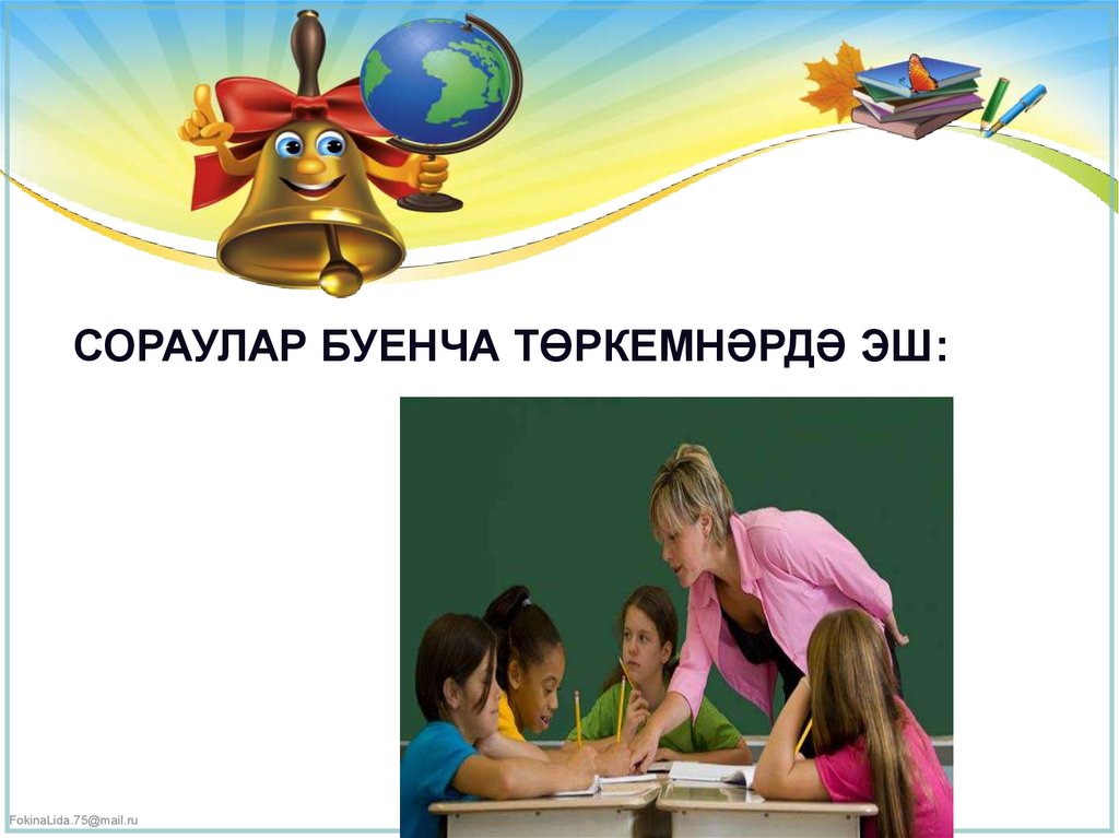 СОРАУЛАР БУЕНЧА ТӨРКЕМНӘРДӘ ЭШ:FokinaLida.75@mail.ru