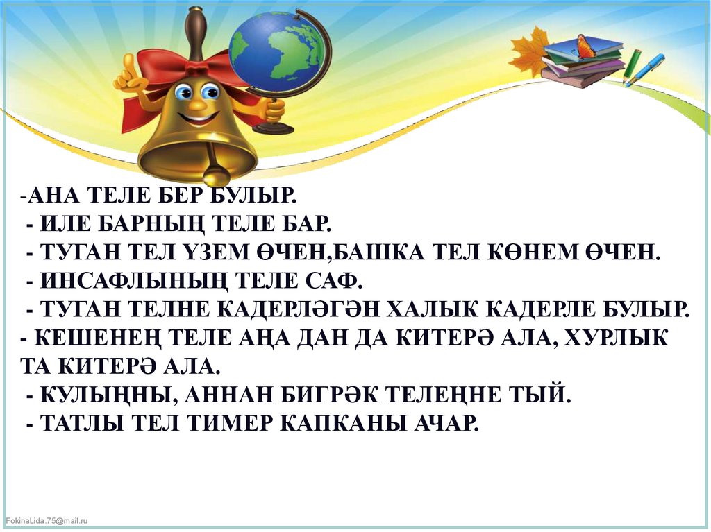 ХӘЕРЛЕ КӨН, УКУЧЫЛАР!FokinaLida.75@mail.ru