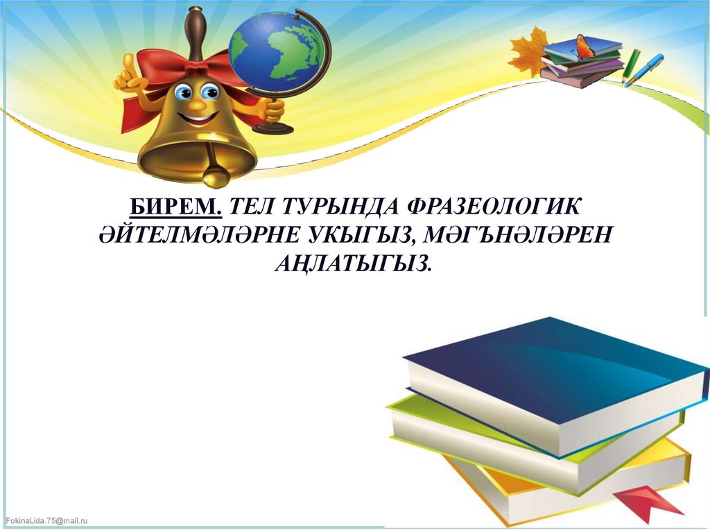 БИРЕМ. ТЕЛ ТУРЫНДА ФРАЗЕОЛОГИКӘЙТЕЛМӘЛӘРНЕ УКЫГЫЗ, МӘГЪНӘЛӘРЕН