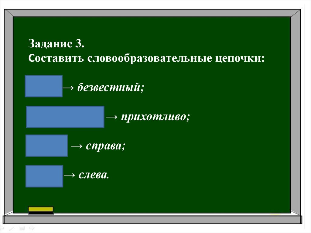 Задание 3.Составить словообразовательные цепочки:
