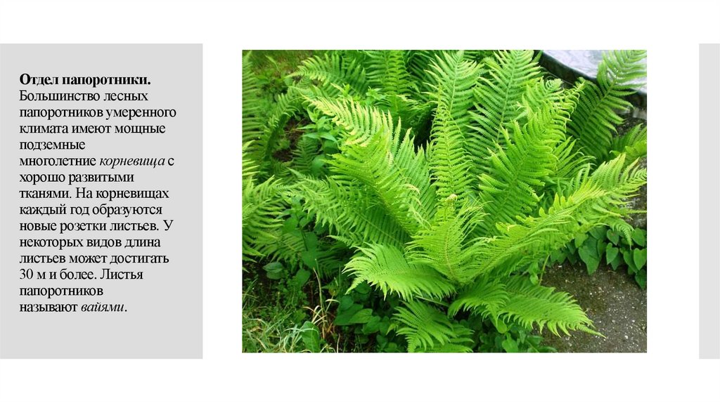 Отдел папоротники.Большинство лесных