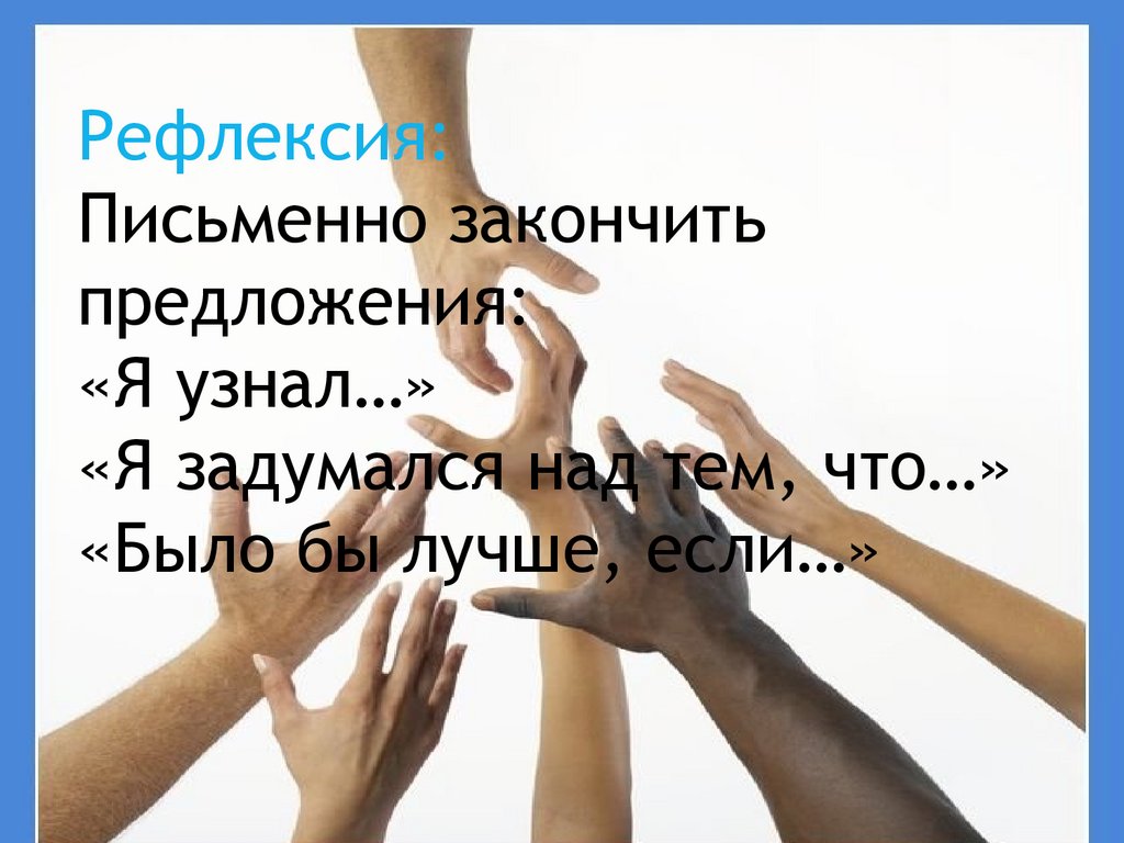 Рефлексия:Письменно закончить