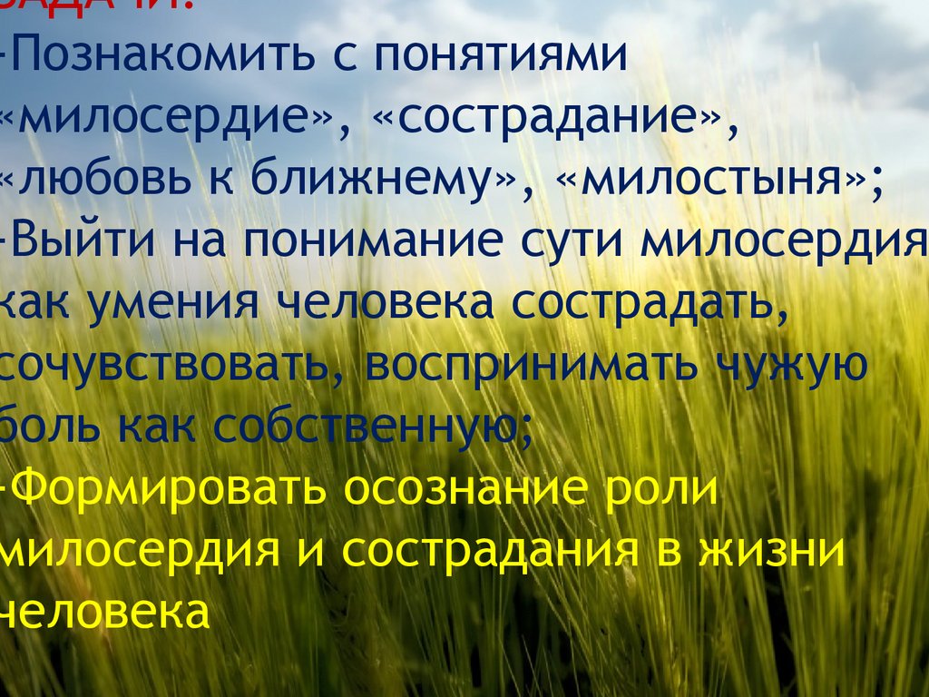 -Выйти на понимание сути милосердия
