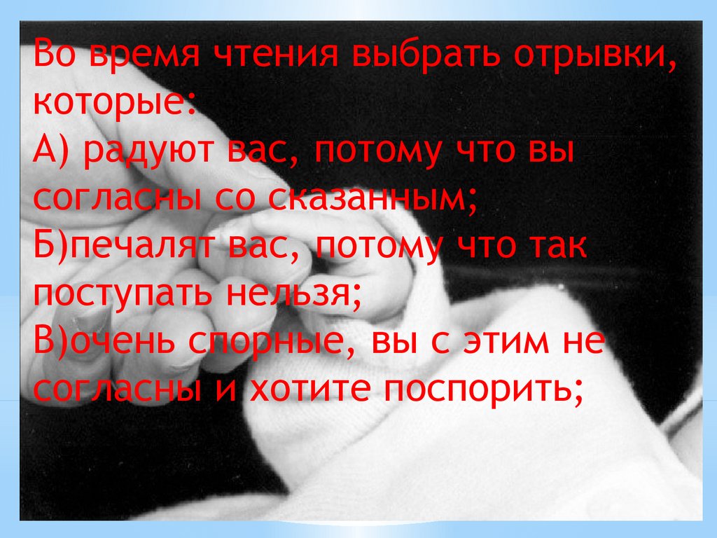 Во время чтения выбрать отрывки,которые:
