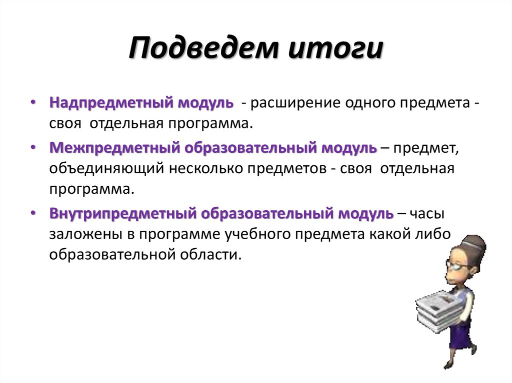 Подведем итоги• Надпредметный модуль - расширение одного предмета своя отдельная программа.
