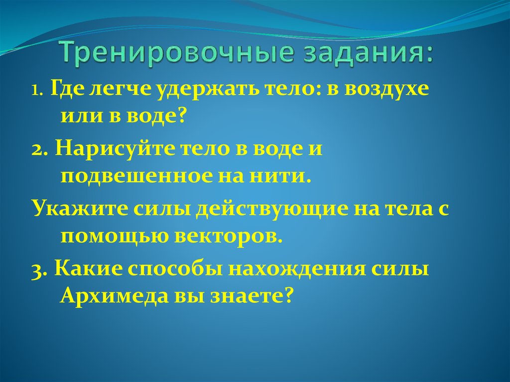 1. Где легче удержать тело: в воздухеили в воде?