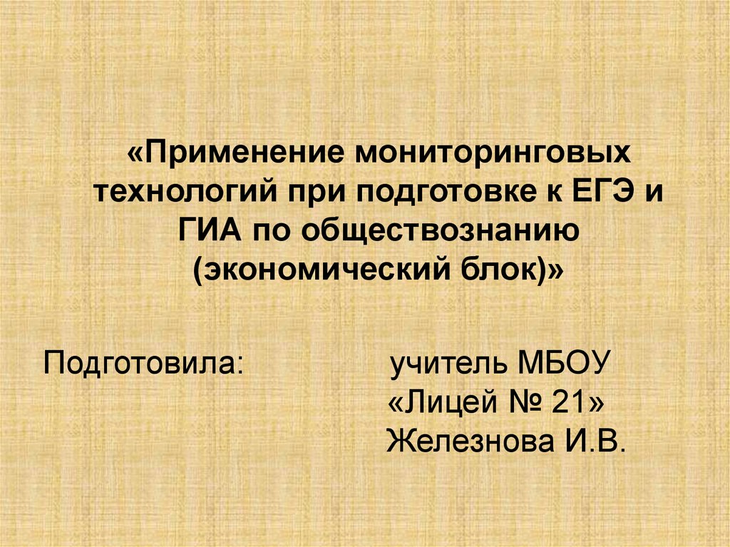 «Применение мониторинговыхтехнологий при подготовке к ЕГЭ и
