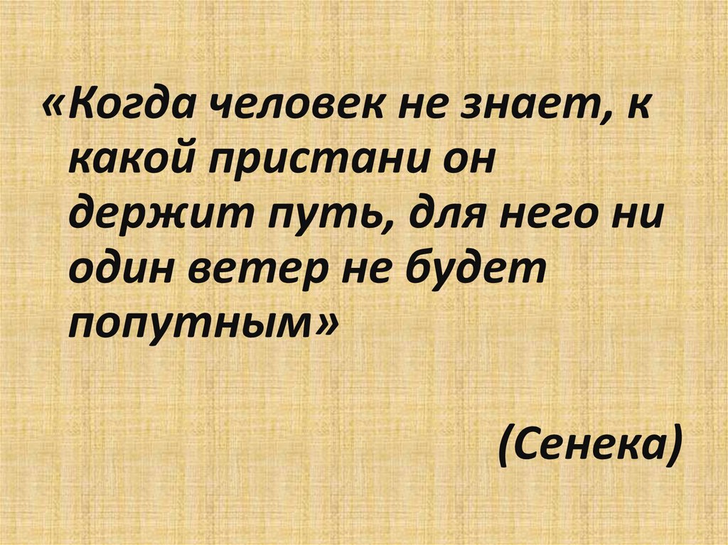 «Когда человек не знает, ккакой пристани он