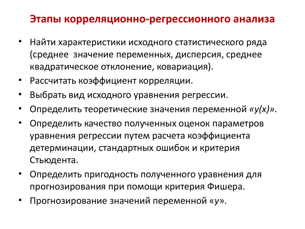 Этапы регресионно-корреляционного анализа с примером решения задачи