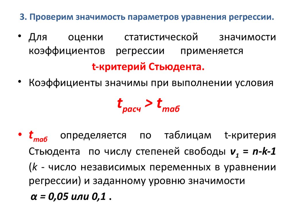 3. Проверим значимость параметров уравнения регрессии.• Для