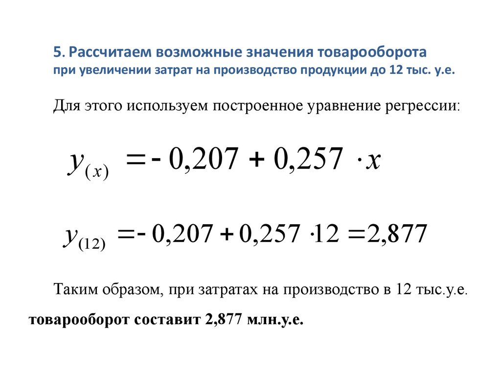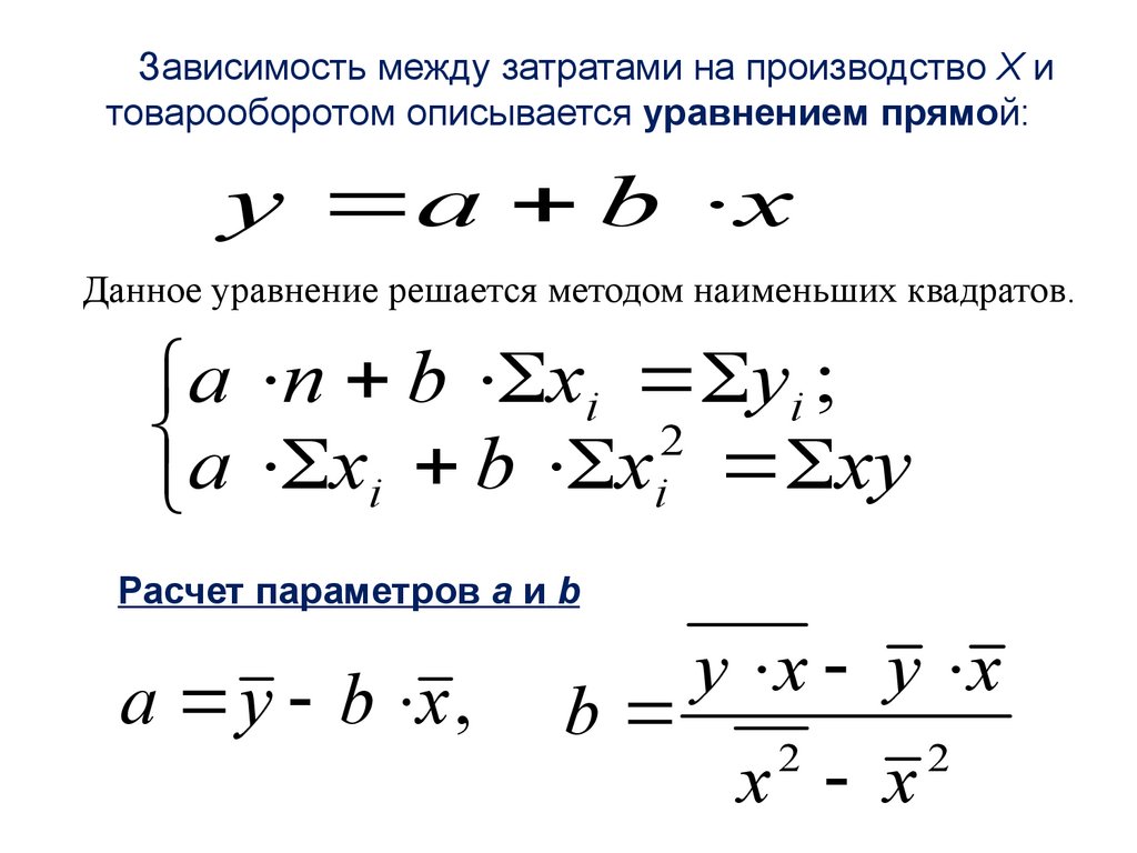 Зависимость между затратами на производство Х итоварооборотом описывается уравнением прямой: