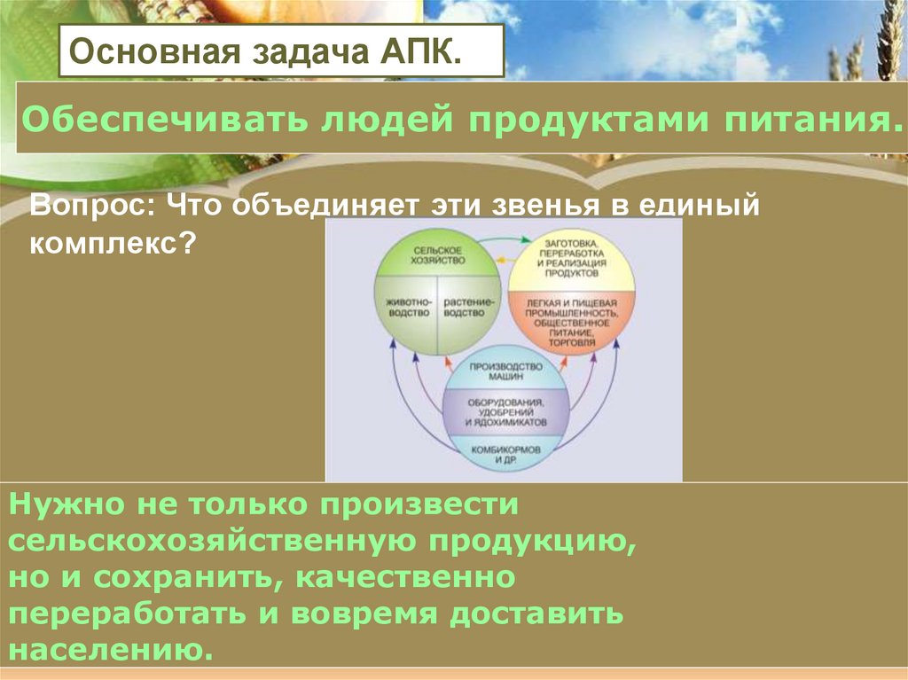 Основная задача АПК.Обеспечивать людей продуктами питания.