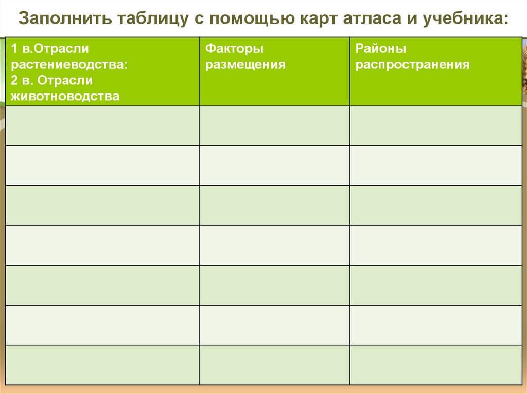 Заполнить таблицу с помощью карт атласа и учебника:1 в.Отрасли