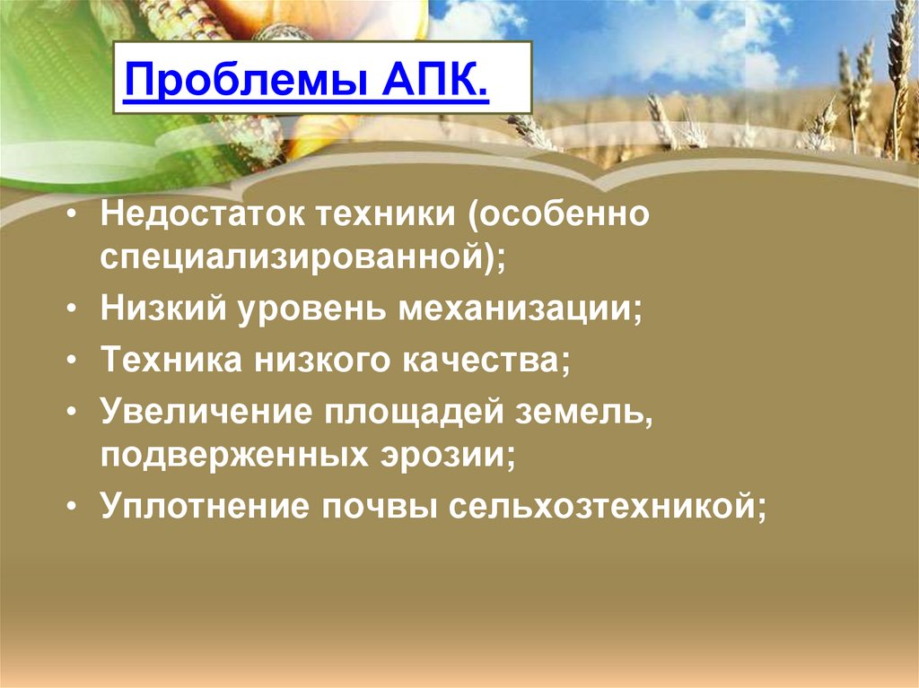 Проблемы АПК.• Недостаток техники (особенно