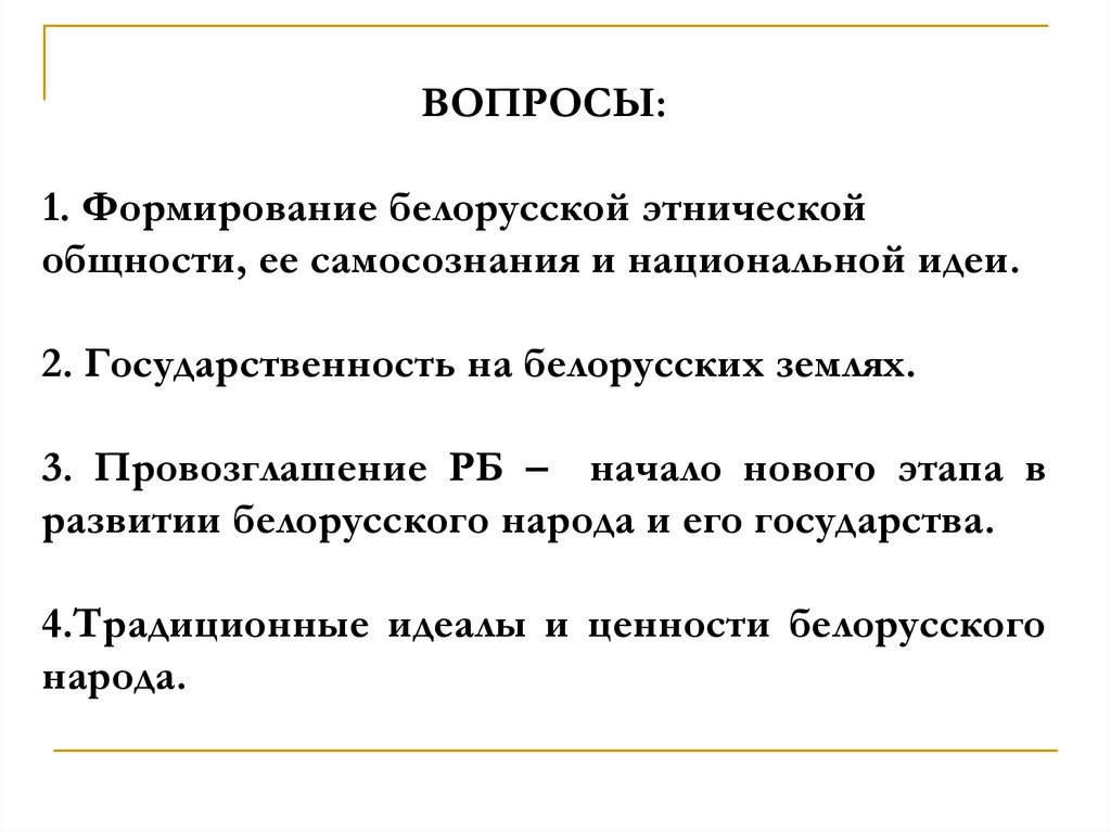 ВОПРОСЫ:1. Формирование белорусской этнической