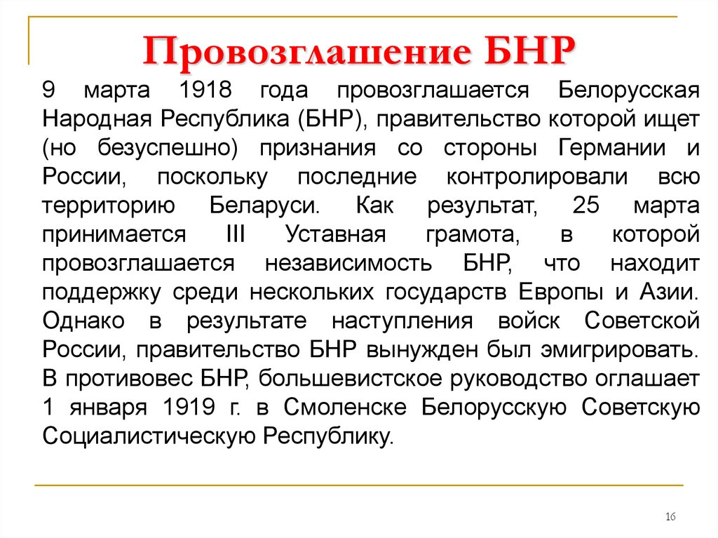 3. Провозглашение РБ – начало нового этапа в
