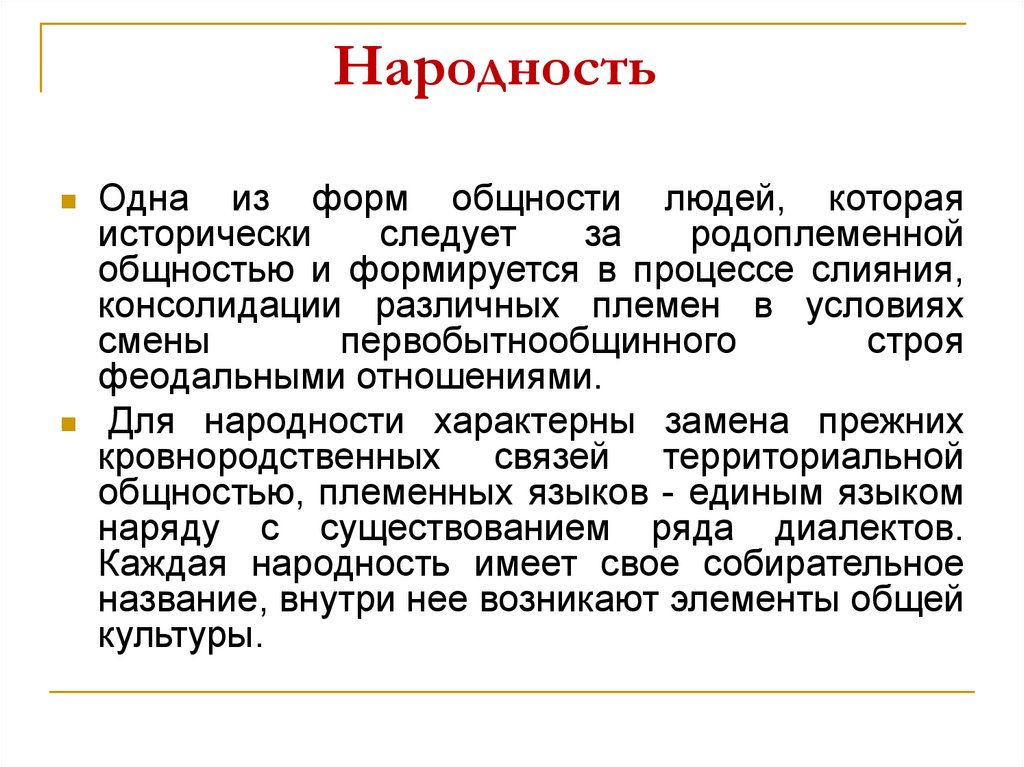 НародностьОдна из форм общности людей, которая