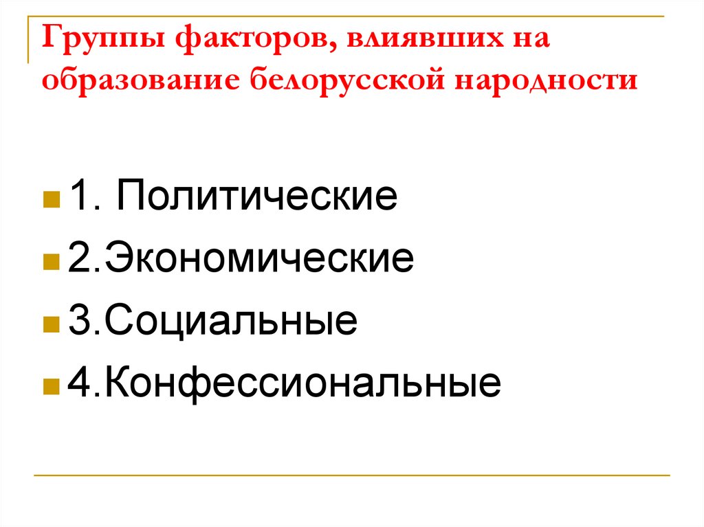 Группы факторов, влиявших наобразование белорусской народности